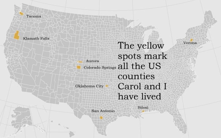 Being an Air Force Brat meant I moved around quite a bit! My childhood took me from New York to Georgia, Illinois, and even France. We returned to Georgia before heading to England and finally settling in Oklahoma. After my dad retired from the USAF in 1971, my family moved back to England, but I stayed behind since I was 19 and living independently. Fun fact: I’m the oldest of five! My siblings came along at various bases: Linda at Sampson AFB in New York, Nancy at Fort McPherson in Georgia, David in Marietta, Georgia, and Michelle at Toul-Rosières Air Base in France. Each place holds a special spot in our hearts.